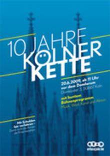 Am Samstag, den 20. Juni 2009, feiert Erlassjahr.de das zehnjährige Jubiläum der Kölner Kette mit einem bunten und interessanten Bühnenprogramm zum damaligen G8-Gipfel. Ab 11 Uhr wird einen Mischung aus Diskussion, Musik und Darbietungen vor dem Domforum präsentiert. Im Innern des Domforums können sich die Besucher über die Kölner Kette und die Mitträgerorganisationen von Erlassjahr.de informieren. Veranstaltungsort wird das Domforum, Domkloster 3 in 50667 Köln sein.